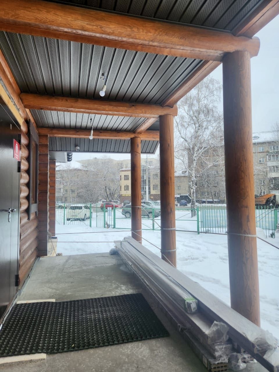 На текущей неделе полностью завершена подшивка потолка крыльца. Для обеспечения прочности и безопасности проводится укрепление ступеней: закуплена металлическая профтруба, которая станет основой для нового металокаркаса, а облицовка степеней будет выполнена с использованием долговечного материала – древесно-полимерного композита (ДПК).