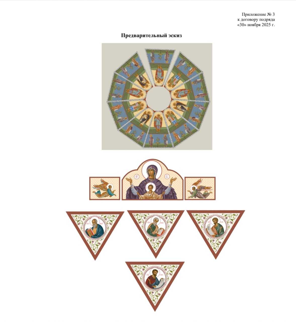 В нашем храме начинается важный и маштабный этап благоустройства – создание декоративного потолка в иконописном стиле. Уже подготовлен предварительный эскиз будущего оформления. Композиция будет выполнена методом печати на золотом холсте.