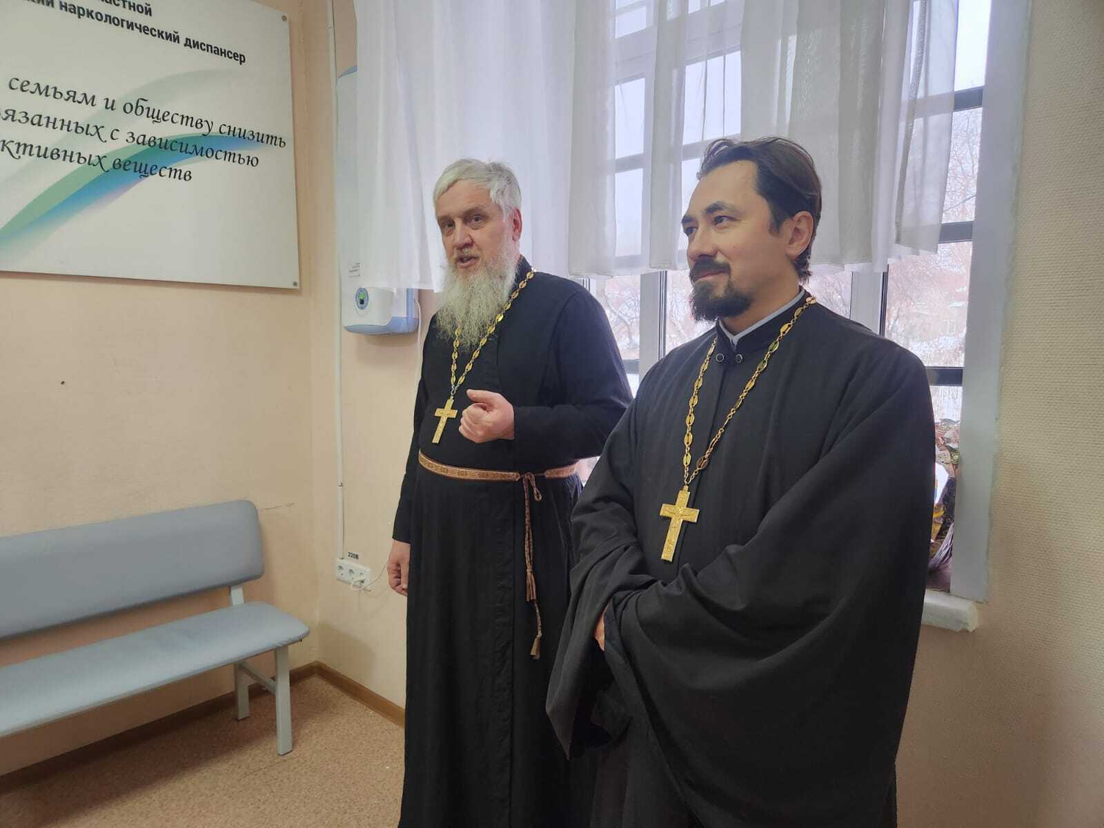 В дни праздника Введения во храм Пресвятой Богородицы остоялся визит настоятеля о. Димитрия, о. Владимира Добринова с певчим нашего храма Александром Еремеевым в три отделения Наркологического диспансера на улице Жуковского. О. Дмитрий и о. Владимир поздравили пациентов с праздником и провели беседу о важности духовной борьбы и ценности трезвой жизни.